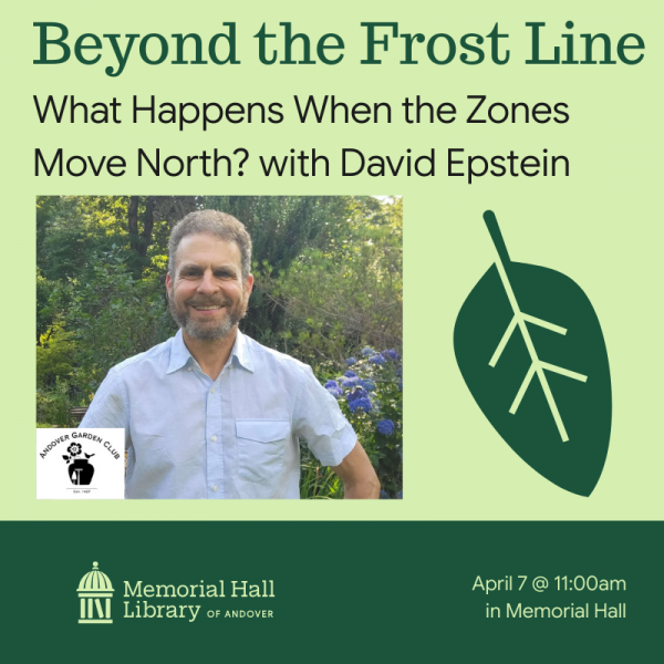 Andover Garden Club and Memorial Hall Library (MHL) are pleased to host well-known meteorologist and horticulturalist, David Epstein. With more than 35 years of professional experience in New England, he writes for the Boston Globe and is the meteorologist for the local NPR station ’GBH Boston. He has served as on-air meteorologist for various stations, including WBZ CH 4 and WCVB CH 5.